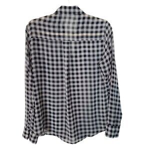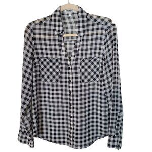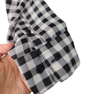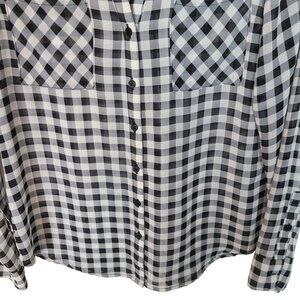 Express Womens S Black White Gingham Checkered Sheer The Portofino Shirt Pockets