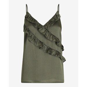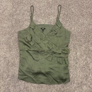 Express Women's Satin Downtown Cami Size XS Green V-Neck Ruffle Front NWT $48