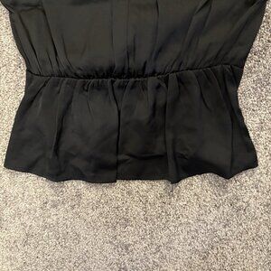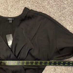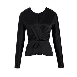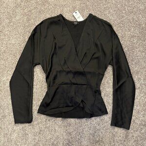 Express Women's Satin Draped Faux Wrap Peplum Top – Size XS – Black – Long Sleeves – NWT $58