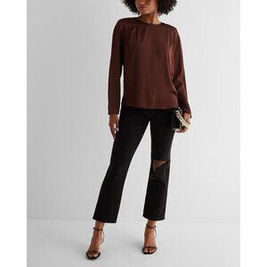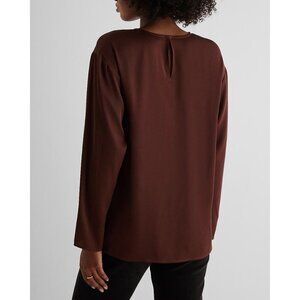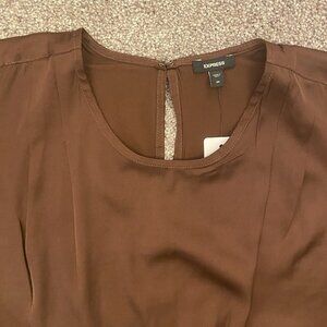 Express Women's Satin Long Sleeve Pleated Gramercy Tee – Rich Mocha – Size XS – NWT – MSRP $54
