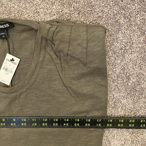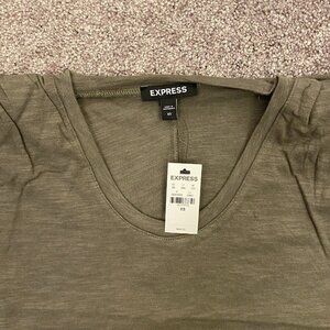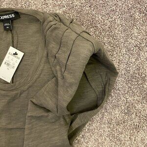 Express Women's Scoop Neck Padded Shoulder Sleeveless Tee – Olive Green – Size XS – NWT – MSRP $44
