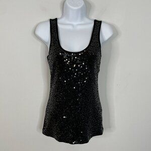 Express Womens Sequin Top Size Small Black Scoop Neck Fitted Tank Y2K