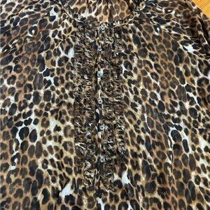 Express Women’s Sheer Cheetah Print Ruffle Neck 3/4 Sleeve Blouse Medium