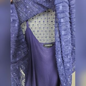 Express Womens Sheer Dot Mock Neck Smocked Cuff Top PURPLE XS