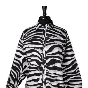 Express Women's Shirt Button Up Animal Print Stretch Oversized Boyfriend Top S