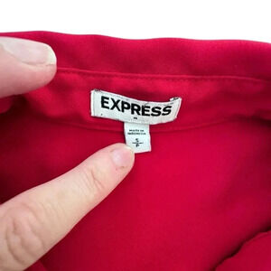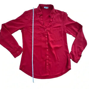 Express Women's Shirt Portofino Button Up Red V-Neck Long Sleeve Blouse Small