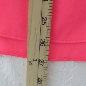 Pre-Owned Condition! 100% Polyester. Hot Neon Pink Short Sleeve Curved Hem Boat Neck Criss Cross Open Sleeve Blouse.