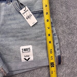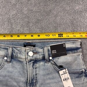 Express Women’s Shortie Denim Shorts Size 2 Mid Rise Light Wash Cuffed Hem NWT