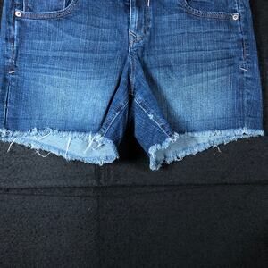 Express Womens Shorts Blue Denim Mid Rise Cotton Blend Cut Off Stretch 8
