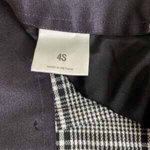 Express Editor Pants – Women’s Size 4S. These chic black and white checkered plaid pants feature a flattering super high rise with a straight leg fit. Designed with a button, dual slide-hook, and zipper closure, plus two front pockets. Made from a structured yet stretchy blend of 43% polyester, 34% cotton, 12% rayon, and 11% spandex — perfect for work or stylish everyday wear. Please note that there is faded coloring on the front right leg, just below the knee. It is pictured.