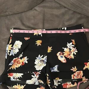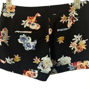 Express Women’s Size 6 Black Floral Preppy Pleated Mid Rise Mini Shorts Zip Up