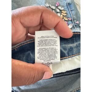 • Features: Rhinestone jewel embellishment, raw frayed hem, 5-pocket design, zip fly with button closure