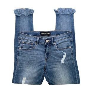 Express Women’s Size 6P Stretch Cropped Frayed Distressed Mid Rise Legging Jean