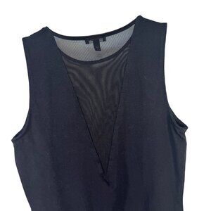 Express Womens Size Medium Black Sleeveless V-Neck Mesh Panel Thong Bodysuit