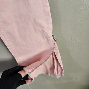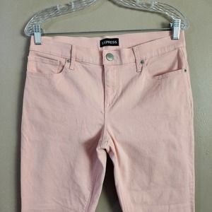 Express Womens Skinny Jeans Size 8 Pink Mid Rise Raw Edge Zip Ankle Stretch