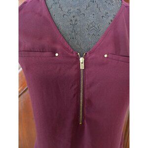 Express Womens Sleeveless Burgundy Blouse With Zipper Detail S