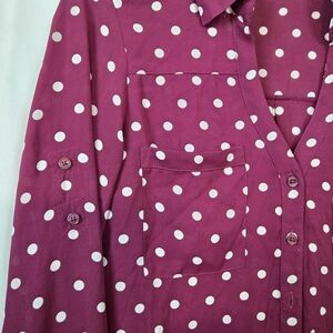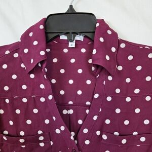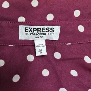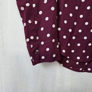 Express Womens Slim Fit Portofino Burgundy Polka Dot Long Sleeve Chiffon Top XS
