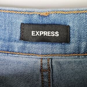 These stylish jeans from Express feature a flattering super high-rise fit with a slim, cropped leg—perfect for pairing with sneakers, boots, or heels. Designed in a classic medium wash blue denim, they offer a versatile look for casual or dressed-up outfits.