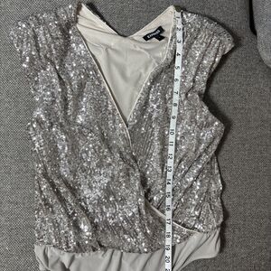 Express Womens Small Silver Sequin Sparkly Stretchy Bodysuit Y2K Glam party