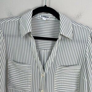 Express Womens Small Striped Button Up Blouse Roll Tab Sleeves Shirt Top