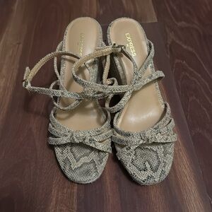 Step out in style with these Express snakeskin strappy Espadrille . Perfect for adding a touch of elegance to any outfit.