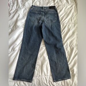 A classic medium wash straight leg with a better than vintage aesthetic. Designed to sit high on the waist and fitted through the hips. The flattering straight leg has a bit of ease and a cropped hem for a clean yet vintage look. The denim you love with upgraded stretch for the best fit ever.