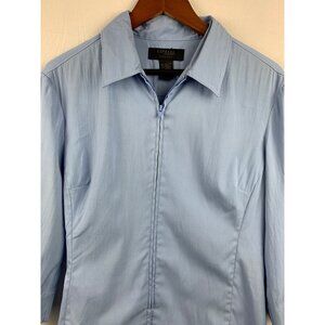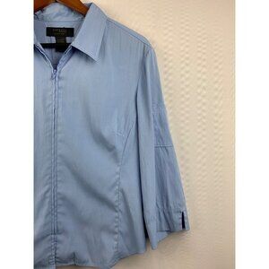 Express Womens Stretch 3/4 Sleeve Blue Zip-Up Collared Shirt