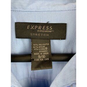 This Express shirt offers a blend of comfort and style with its stretchable fabric. The zip-up front and classic collar present a polished look suitable for work or casual outings. The 3/4 length sleeves provide a modern touch while allowing ease of movement.