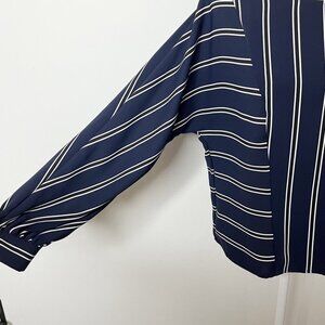 Express Women's Striped Blouse Size M Blue & White Dolman Long Sleeve Slit Back