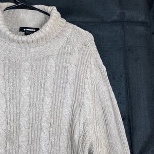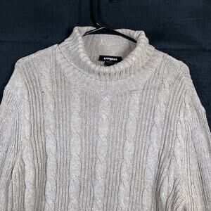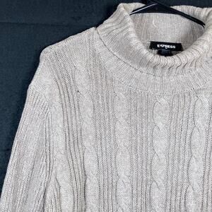 Express Womens Sweater Brown Cable Knitted Mock Neck Long Sleeve Tunic Large