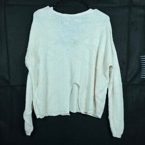 Express Womens Sweater Cream V Neck Criss Cross Slit Back Knit Cotton Blend M