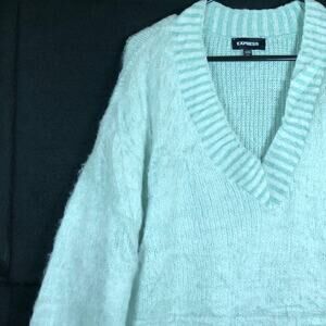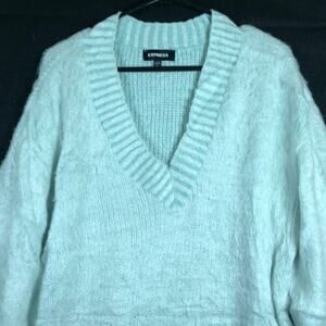 Express Womens Sweater Light Blue V Neck Super Soft Over Sized Puffed Sleeves L