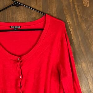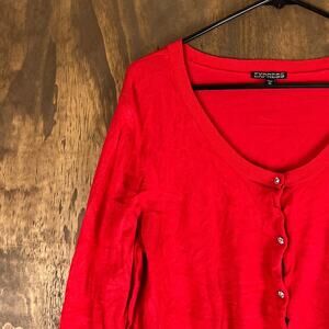 Express Womens Sweater Red Cardigan Diamond Button Front Long Sleeve Stretch XL