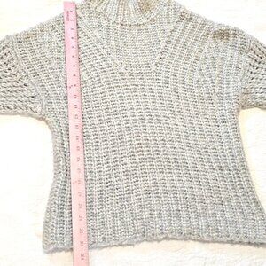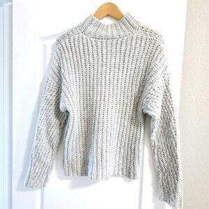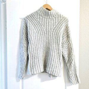 Express Women's Sweater Size Medium Light Blue Grey Chunky Knit High Neck Preppy