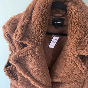 Cozy brown teddy jacket. Perfect for layering. Adds warmth and style.