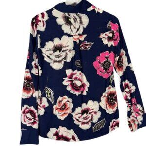 Express Womens The Portofino Shirt in Navy Floral Pockets Tab Sleeves S