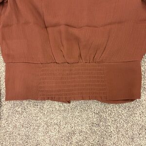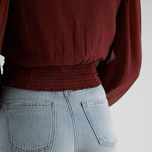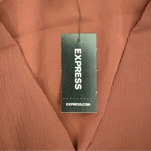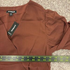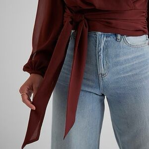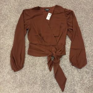 Express Women's Faux Wrap Tie Waist Top – Size XS – Rum Raisin – Long Sleeve – NWT – MSRP $54