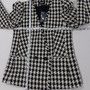 Express Women's Tweed Black and‎ white Plaid Collarless Blazer Jacket Size XS