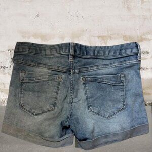 Express Women's Ultimate Stretch Blue Jean Shorts Distressed Low Rise Size 2