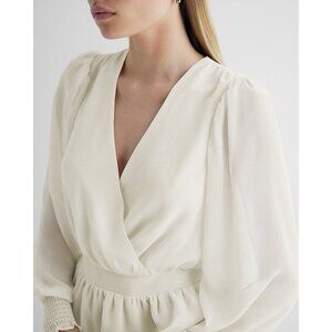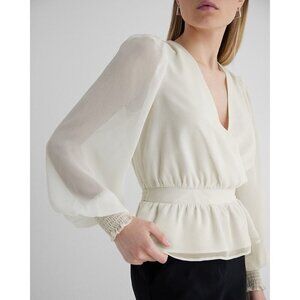 Express Women's V-Neck Smocked Cuff Peplum Top Long Sleeves Swan Size XS NWT $54
