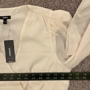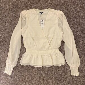 Express Women's V-Neck Smocked Cuff Peplum Top Long Sleeves Swan Size XS NWT $54