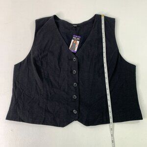 Express Women's Vest XXL Classic Fit V-Neck Button Up Linen Vest Black Size XXL