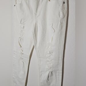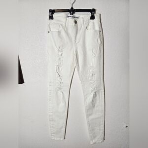 Express Women's White Distressed Mid-Rise Legging Size 2