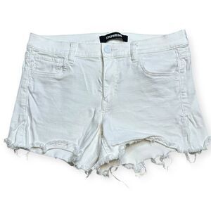 Express Women's White Mid Rise Stretch Raw Hem Distressed Shorts Size 8
