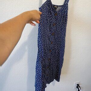 Express Women's White Polka Dots Strappy Sleeve Midi Dress Navy size Medium