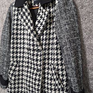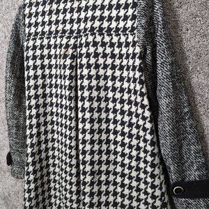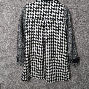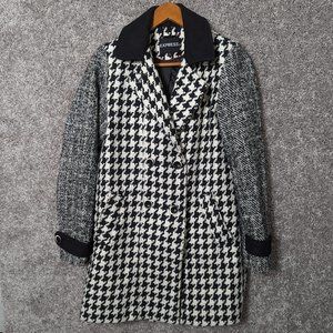 Express Womens Wool Blend Houndstooth Black White Double Breasted Peacoat