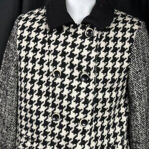 **Express** Women's Wool Blend Houndstooth Black White Double Breasted Peacoat M