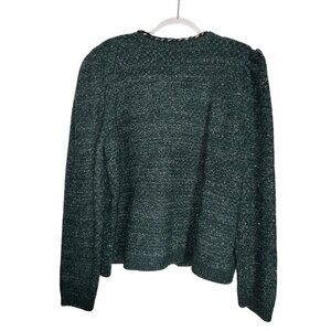 Express Womens XL Green Boucle Cardigan Sweater With Gold Braided Trim Classic