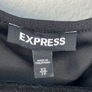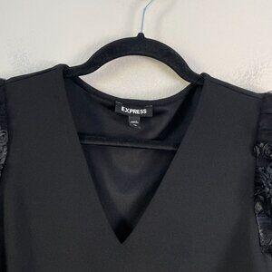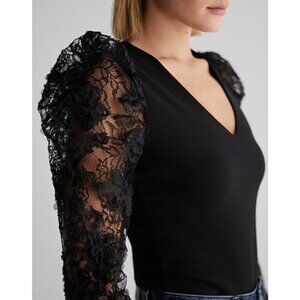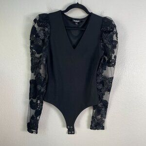 Express Womens XS Black Floral Mesh Long Sleeve Bodysuit V Neck Top