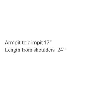 Armpit to armpit = 17 inches, Length from shoulders = 24 inches.